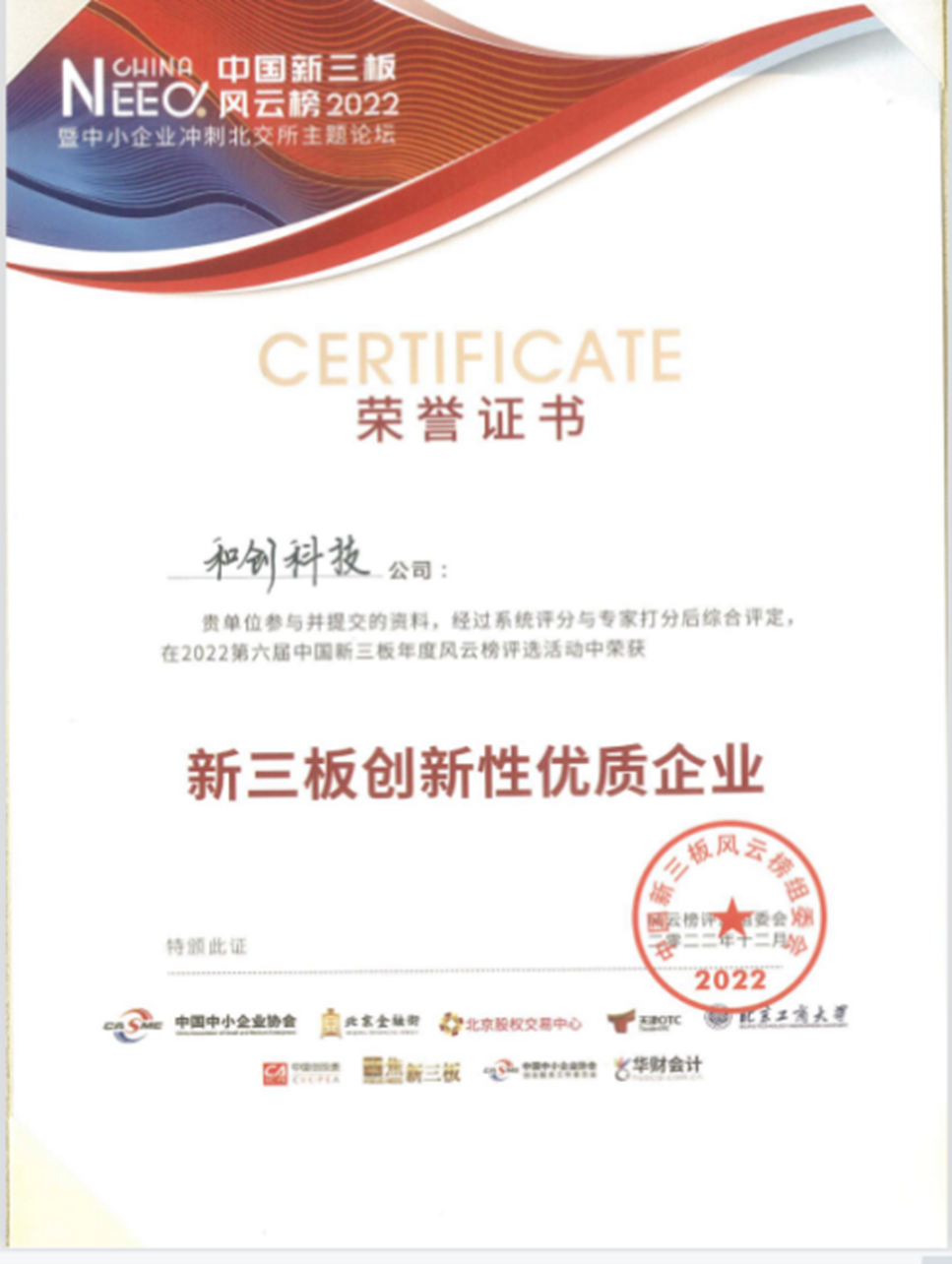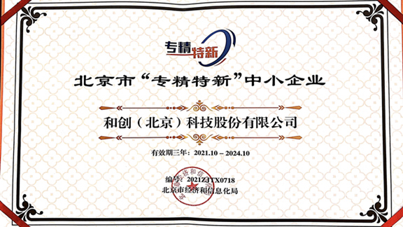和創(chuàng)科技憑借技術(shù)突破、產(chǎn)品創(chuàng)新、細(xì)分市場(chǎng)優(yōu)勢(shì)及拓展?jié)摿Φ榷喾矫鎯?yōu)勢(shì),榮獲北京市經(jīng)濟(jì)和信息化局2021年度第二批認(rèn)定的專(zhuān)精特新“小巨人”企業(yè)榮譽(yù)稱(chēng)號(hào)。
