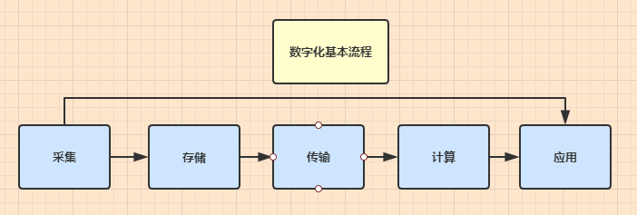 數(shù)字化包括數(shù)據(jù)的采集、傳輸、存儲、計(jì)算和應(yīng)用,是指將各類復(fù)雜多變的信息轉(zhuǎn)變?yōu)榭梢远攘康臄?shù)據(jù),并加以處理的過程。