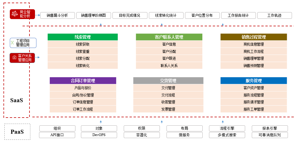紅圈 CRM+是一款集合了工程項目管理功能和客戶關系管理功能的 SaaS 產品,以自有底層 PaaS 平臺為依托,以業(yè)務實踐經驗為指導而構建。產品以助力企業(yè)級客戶提效率、降風險、控成本、管過程、增利潤為核心價值,能夠實現(xiàn)在工程項目管理和客戶關系管理領域不同功能模塊的靈活配置,滿足客戶的個性化需求。