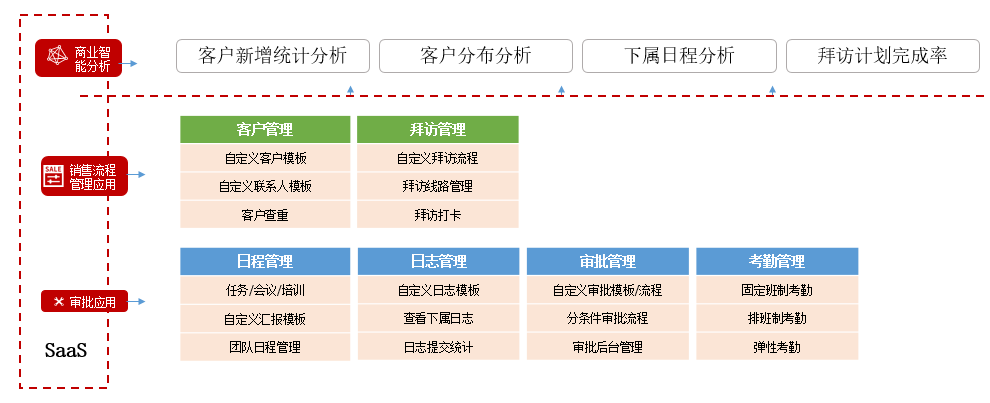 紅圈通是一款主要針對于通用行業(yè)的客戶管理與銷售協(xié)同管理 SaaS 產品,集合了客戶管理、拜訪管理、考勤、審批、日志、日程、數(shù)據分析等功能,滿足企業(yè)銷售自動化和辦公自動化的需求。
