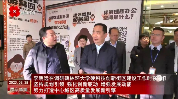 3月28日,西安市委副書記、市長李明遠(yuǎn)前往碑林區(qū)調(diào)研環(huán)大學(xué)硬科技創(chuàng)新街區(qū)建設(shè)有關(guān)工作,參觀并詳細(xì)了解星光德必易園運(yùn)營模式和現(xiàn)況。