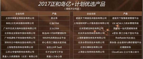 2017年9月,億+計劃二期啟動,462件企業(yè)服務(wù)產(chǎn)品報名參與。經(jīng)過嚴(yán)格的資料審核和面對面的廠商訪談,40件產(chǎn)品進(jìn)入終審。聯(lián)盟邀請了企業(yè)服務(wù)領(lǐng)域知名投資人、行業(yè)專家和專業(yè)媒體等組成終審委員會,圍繞“創(chuàng)新性、專業(yè)性、適用性”三要素,根據(jù)“企業(yè)實力、產(chǎn)品實力、技術(shù)能力、客戶服務(wù)能力、需求響應(yīng)能力”五個評價維度進(jìn)行了綜合評估,最終評選出紅圈CRM、致遠(yuǎn)A8-V5協(xié)同管理軟件、視源股份MAXHUB高效會議平臺、易企秀云學(xué)堂樂才企業(yè)學(xué)習(xí)平臺等17件優(yōu)秀產(chǎn)品。