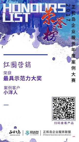 其中的正和島企業(yè)服務(wù)案例大賽評(píng)選,紅圈營(yíng)銷憑借成功服務(wù)于中國(guó)馳名品牌小洋人的案例,獲得了“最具示范力”大獎(jiǎng),紅圈CRM同時(shí)成功入選億+計(jì)劃二期,彰顯了紅圈營(yíng)銷在企業(yè)服務(wù)領(lǐng)域的超凡實(shí)力。