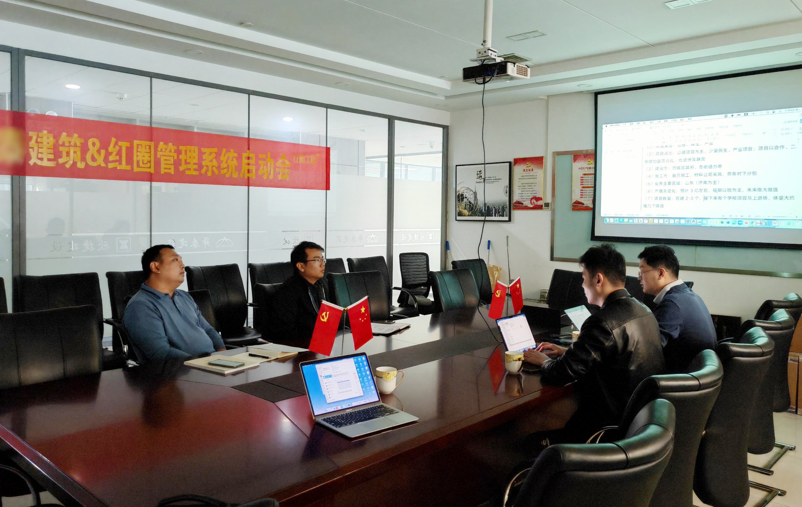 11月7日早8:30,雙方團(tuán)隊(duì)在舜泰建筑公司會議室舉行了“濟(jì)南舜泰建筑&紅圈工程管理系統(tǒng)啟動會”。