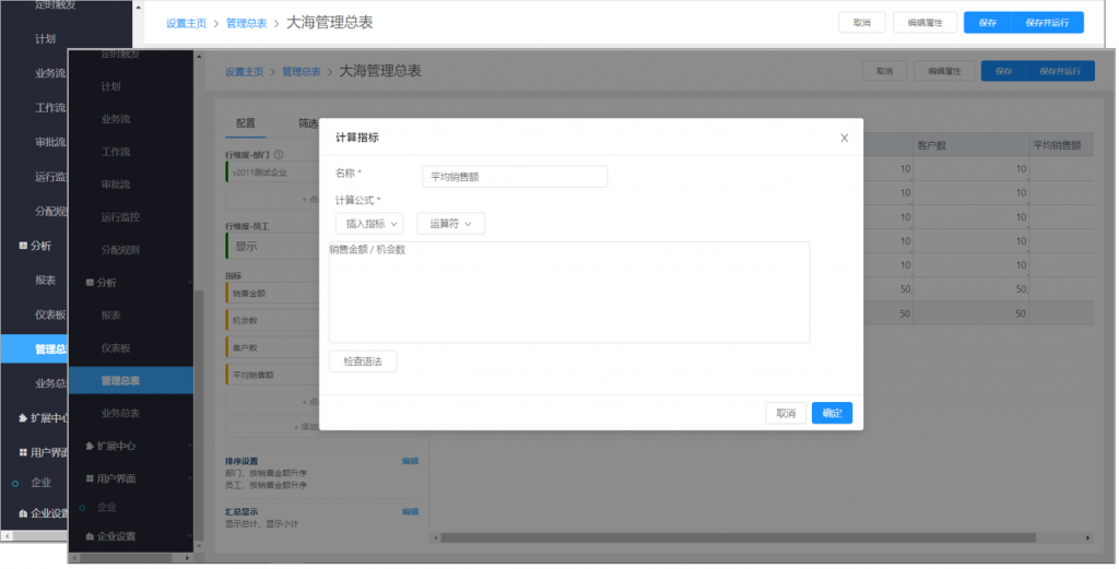 7. 管理總表增加計算型指標(biāo)和顯示格式