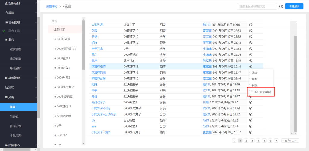 報表可以創(chuàng)建菜單項,支持在前臺快速訪問