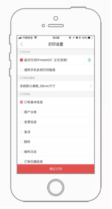 -訂/退單、出入庫單、調(diào)撥單、成本調(diào)整入庫單、采購訂退單等均支持標(biāo)準(zhǔn)模板打印自定義信息,其中訂單支持藍(lán)牙打印