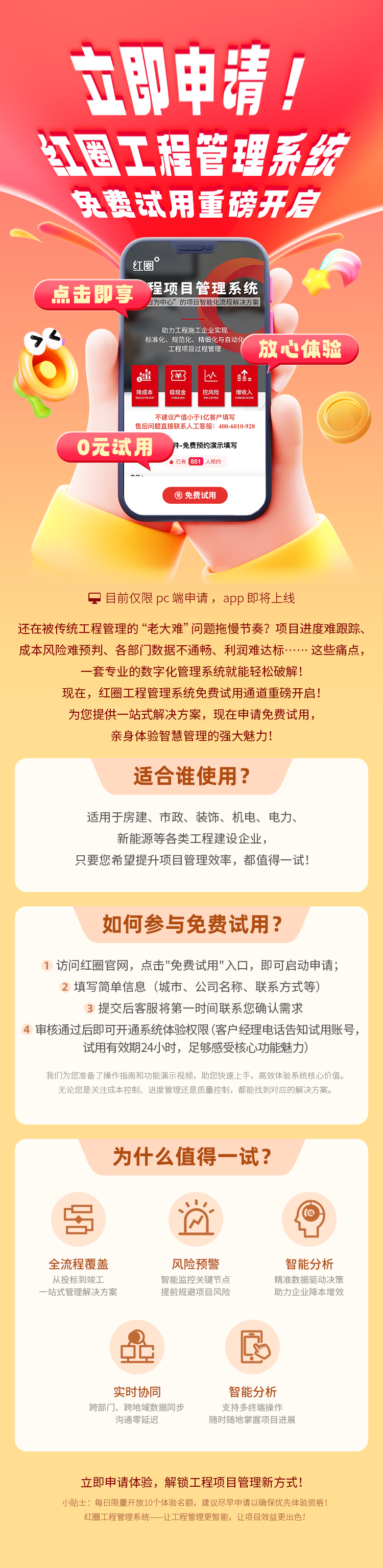 立即申請!紅圈工程管理系統(tǒng)免費(fèi)試用重磅開啟!