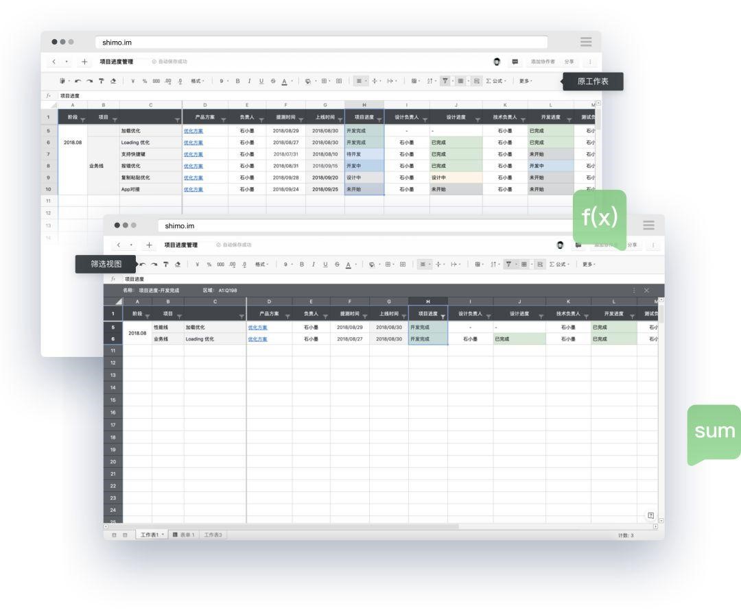 石墨表格,完美兼容本地 Excel 文件,導入導出流暢無損,無格式混亂;提供的 6 大函數(shù)類別,400+公式,基本可以覆蓋 90%主流辦公軟件;支持單元格鎖定,可根據(jù)不同協(xié)作者開放不同層級的查看/編輯權(quán)限;支持篩選視圖,協(xié)作者可獨立篩選數(shù)據(jù)而不互相干擾。