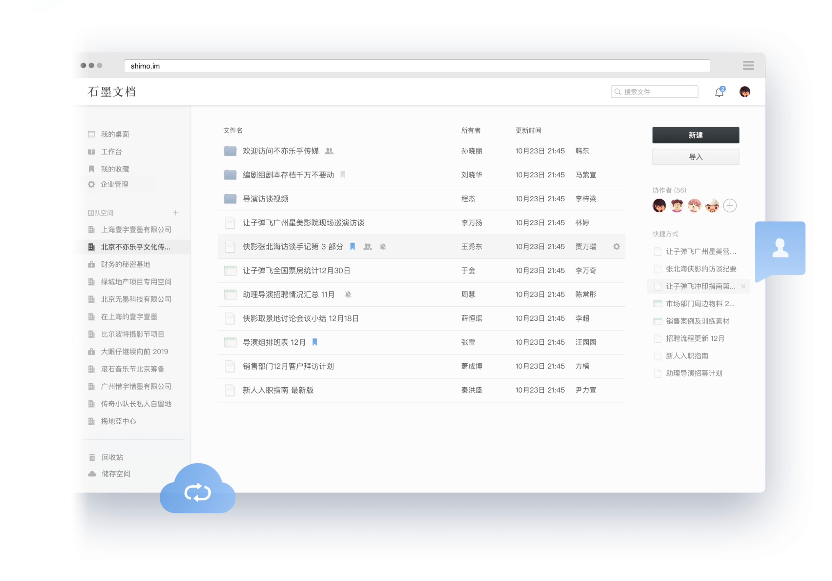 石墨團隊空間,提供企業(yè)云盤功能,支持上傳大多數(shù)格式文件,并支持 Office、pdf、圖片、音視頻、txt、markdown