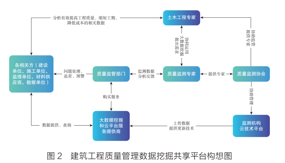 建立基于大數(shù)據(jù)挖掘的數(shù)據(jù)共享平臺(tái),使質(zhì)量相關(guān)數(shù)據(jù)能夠在相關(guān)各方之間有效地傳輸與使用,進(jìn)而提高企業(yè)工程質(zhì)量管理的水平及政府監(jiān)管效率。