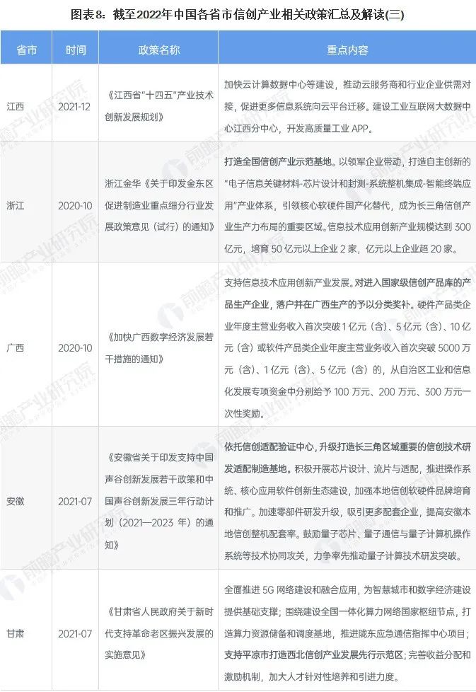 ——31省市城市信創(chuàng)產(chǎn)業(yè)政策匯總