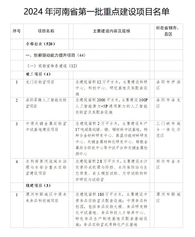 點擊查看完整項目清單:2024年河南省第一批重點建設(shè)項目名單