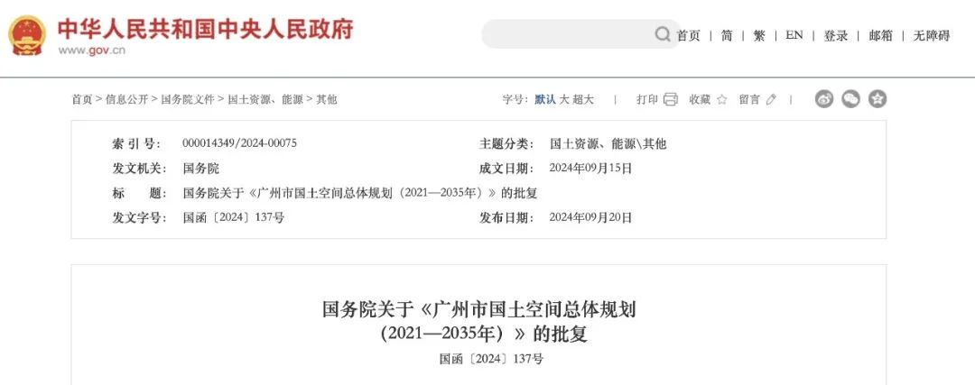 9月20日,國(guó)務(wù)院發(fā)布關(guān)于《廣州市國(guó)土空間總體規(guī)劃(2021—2035年)》的批復(fù)。