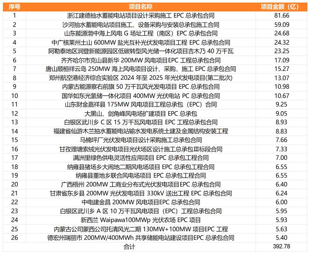 中國(guó)電建公布2024年新簽項(xiàng)目,26個(gè)涉及風(fēng)光儲(chǔ),金額近400億