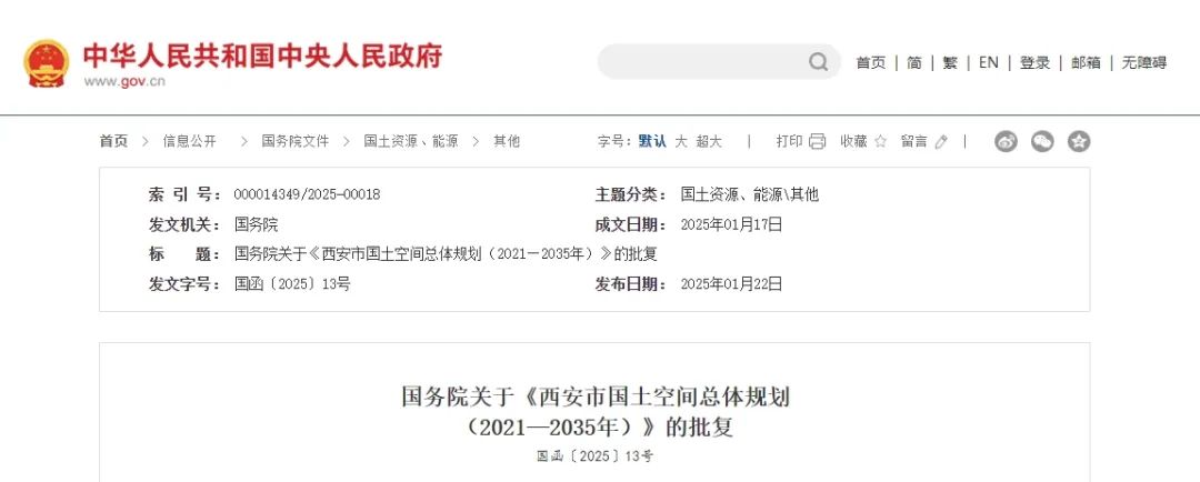 國務(wù)院關(guān)于《西安市國土空間總體規(guī)劃(2021—2035年)》的批復(fù)