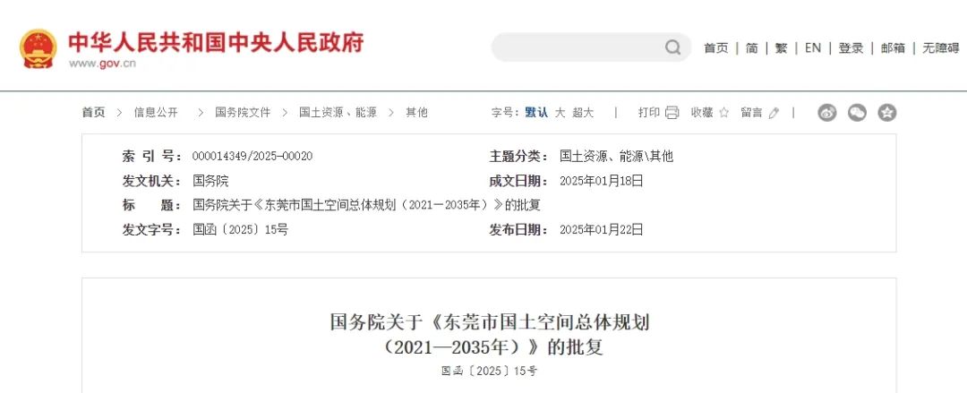 國務(wù)院關(guān)于《東莞市國土空間總體規(guī)劃(2021—2035年)》的批復(fù)