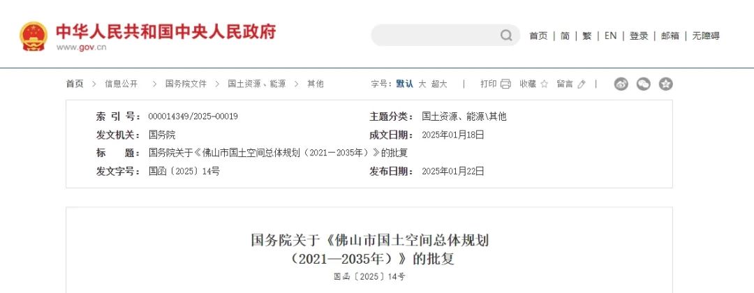 國務(wù)院關(guān)于《佛山市國土空間總體規(guī)劃(2021—2035年)》的批復(fù)