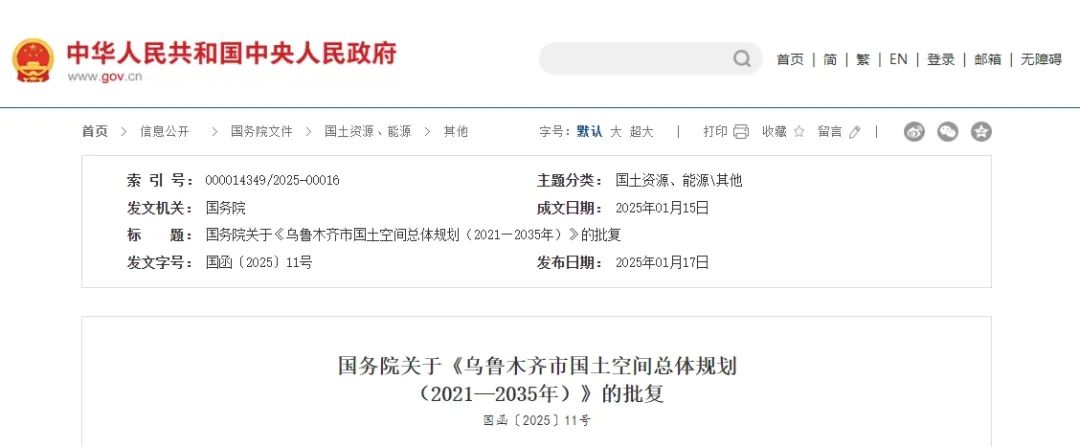 國務(wù)院關(guān)于《烏魯木齊市國土空間總體規(guī)劃(2021—2035年)》的批復(fù)