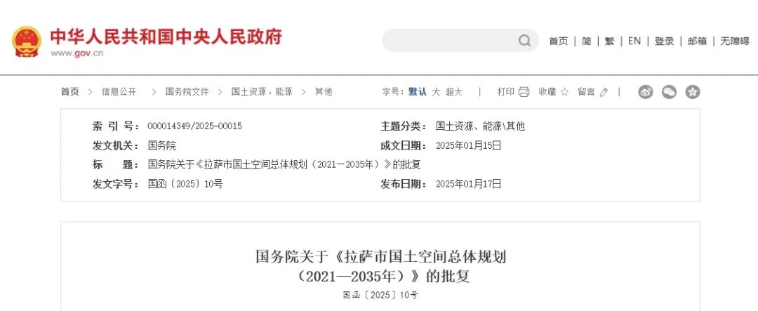 國務(wù)院關(guān)于《拉薩市國土空間總體規(guī)劃(2021—2035年)》的批復(fù)