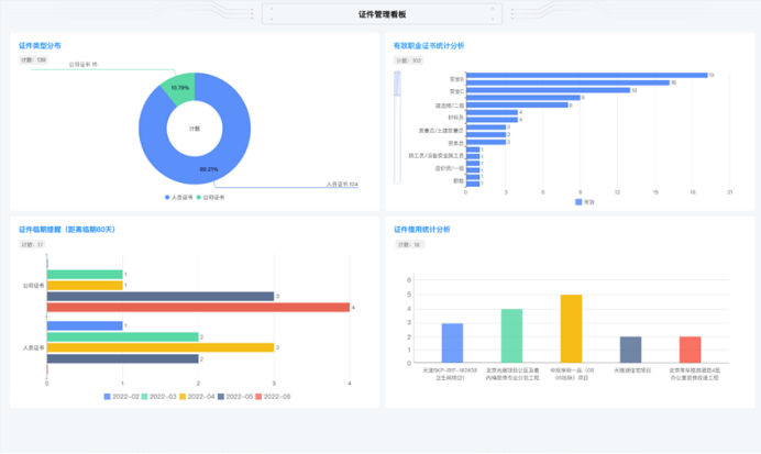 證照到期智能提醒:資質(zhì)證書、保函等關(guān)鍵文件臨近過期時,系統(tǒng)自動觸發(fā)通知,避免因證照失效導致流標或罰款。