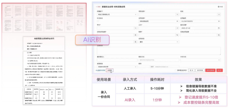 紅圈系統(tǒng)支持移動智能終端實時采集現(xiàn)場數(shù)據(jù),確保工程情況第一時間上傳至云端,便于各級管理人員隨時掌握進展。同時,線上協(xié)同實現(xiàn)了全程留痕,所有審批、變更、溝通記錄均可追溯,避免了因信息不透明導致的決策失誤。這種數(shù)字化協(xié)同模式不僅加快了響應(yīng)速度,也顯著提升了整體項目的執(zhí)行效率和質(zhì)量。紅圈AI進一步強化了這一能力,“AI錄單助手”通過大模型自動識別各類單據(jù),實現(xiàn)從圖像識別到系統(tǒng)錄入的秒級閉環(huán),減少90%人工操作,“AI企業(yè)知識庫”則將分散知識轉(zhuǎn)化為即問即答的能力,員工用自然語言提問,3秒獲取精準答案,而“AI業(yè)務(wù)助手”通過實時解析工程管理業(yè)務(wù)數(shù)據(jù),將AI能力深度嵌入工作流,讓業(yè)務(wù)決策更精準、更高效。