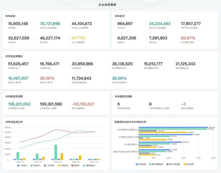 更關(guān)鍵的是 “數(shù)據(jù)穿透” 能力:管理層可以從總部層面,穿透到分子公司,再下鉆到具體項(xiàng)目,實(shí)時(shí)查看進(jìn)度、成本、資金等維度的動(dòng)態(tài) —— 比如總部能實(shí)時(shí)掌握所有項(xiàng)目的現(xiàn)金流情況,分子公司能監(jiān)控下轄項(xiàng)目的分供方付款進(jìn)度,項(xiàng)目端能追溯每一筆成本的來源。這種 “總部 - 分子公司 - 項(xiàng)目” 三級(jí)透明化管理,不僅滿足了央企國企對(duì) “運(yùn)營透明度”“集團(tuán)化管控” 的嚴(yán)格要求,還能為審計(jì)合規(guī)、重大決策提供可信的數(shù)據(jù)依據(jù),完美契合 “強(qiáng)總部、精項(xiàng)目” 的管理導(dǎo)向。