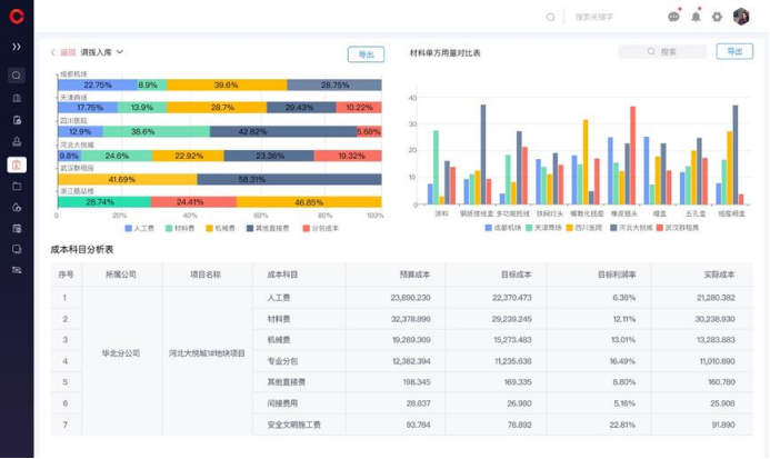 工程項目成本構成復雜,涉及人工、材料、機械等多方面,傳統(tǒng)的成本核算滯后且不精確,容易導致過程成本失控、項目利潤不及預期。同時,材料成本占項目總成本比重高,其采購價格波動、領用超耗等問題若不能及時掌握,會直接侵蝕項目利潤。企業(yè)亟需一種能夠?qū)Τ杀具M行實時對比分析、對物資進行全流程監(jiān)管的有效工具。