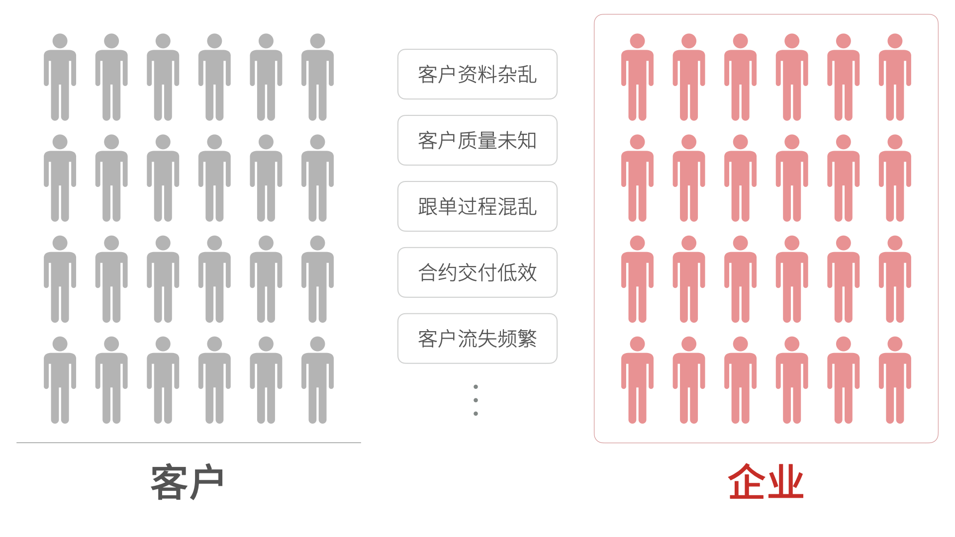 但是對于絕大多數企業(yè)而言,他們面對的是數以萬記的企業(yè)或個人客戶,如果沒有系統(tǒng)的輔助,往往會導致客戶資料雜亂、客戶質量未知、跟單過程混亂、合約交付低效、客戶流失頻繁等企業(yè)經營困境,自然無法實現(xiàn)收入預期的最大化。而且企業(yè)內部還有分屬不同部門的千百名員工,一個客戶從線索到回款的全生命流程往往需要各部門數名員工的協(xié)同工作,如果沒有系統(tǒng)化的流程管理和數字化的決策輔助,也無法提高收入預期的置信度。